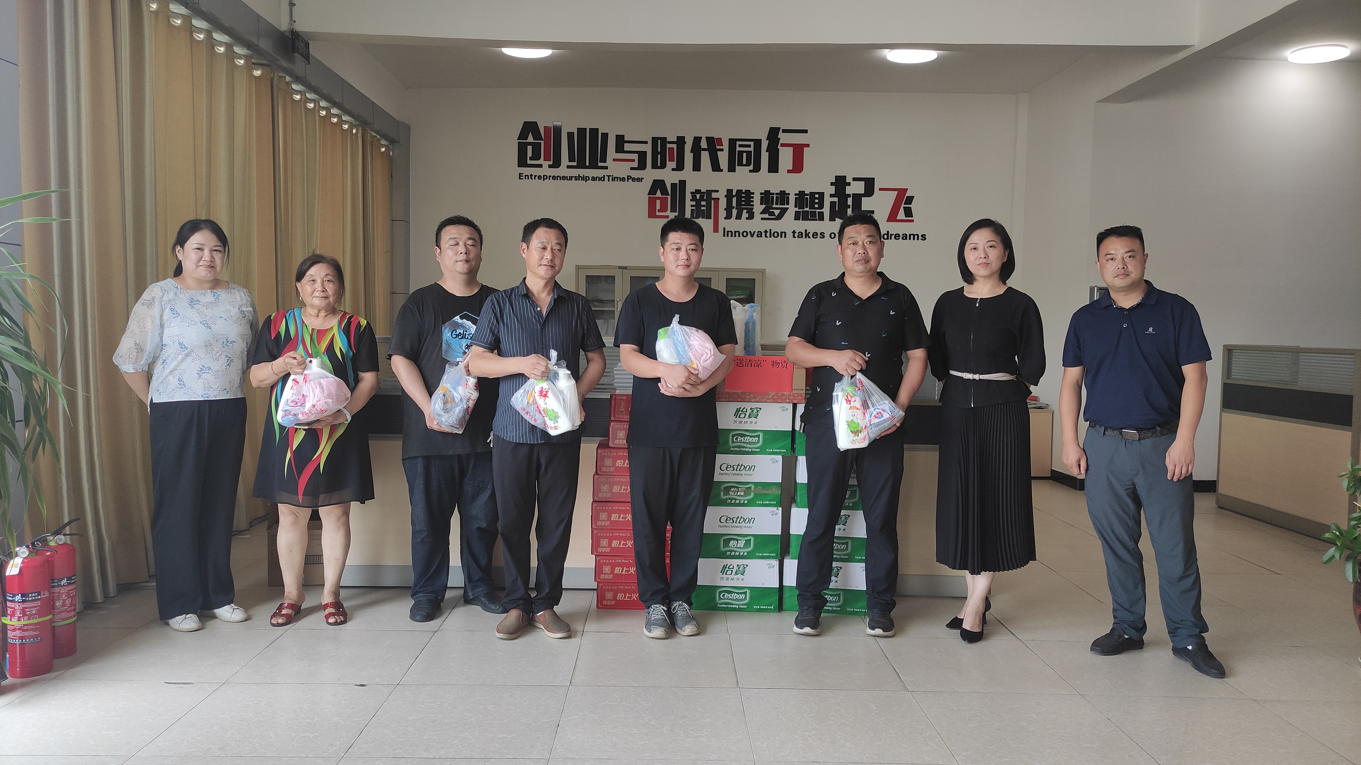 “大家辛苦了!最近高溫天氣要注意做好防暑降溫工作,時刻注意自己的身體狀況?!?/span>本次活動由集團工會主席親自帶隊,逐一到集團下屬3個園區(qū)、2個項目現(xiàn)場、1個倉庫、3個職能部門共計162名一線職工和129名農民工進行慰問,每到一處,慰問組都要與員工親切座談,轉達省供銷社工會和集團公司對堅守在高溫一線員工的關心和問候,向他們表示親切慰問,再三囑咐大家注意防暑降溫,保重身體健康,合理安排高溫作業(yè)時間,把各項勞動保護措施抓實抓細,切實保障職工防疫安全、生活安全、生命安全。